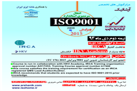 سرممیزی ایزو ٩٠٠١ انتقال از ٢٠٠٨ به ٢٠١۵ تحت اعتبار irca